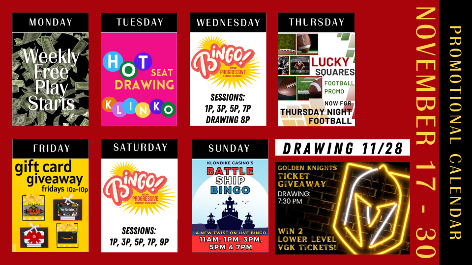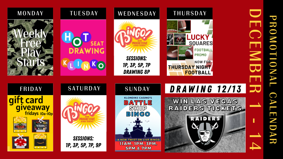 Make sure you join Player’s Edge, our signature loyalty club. It’s your chance to earn great perks just by playing all your favorite games here at The Klondike. So while you’re raking it in with our frequent payouts, you’ll also get invited to special events, enjoy special members-only giveaways and a whole lot more.